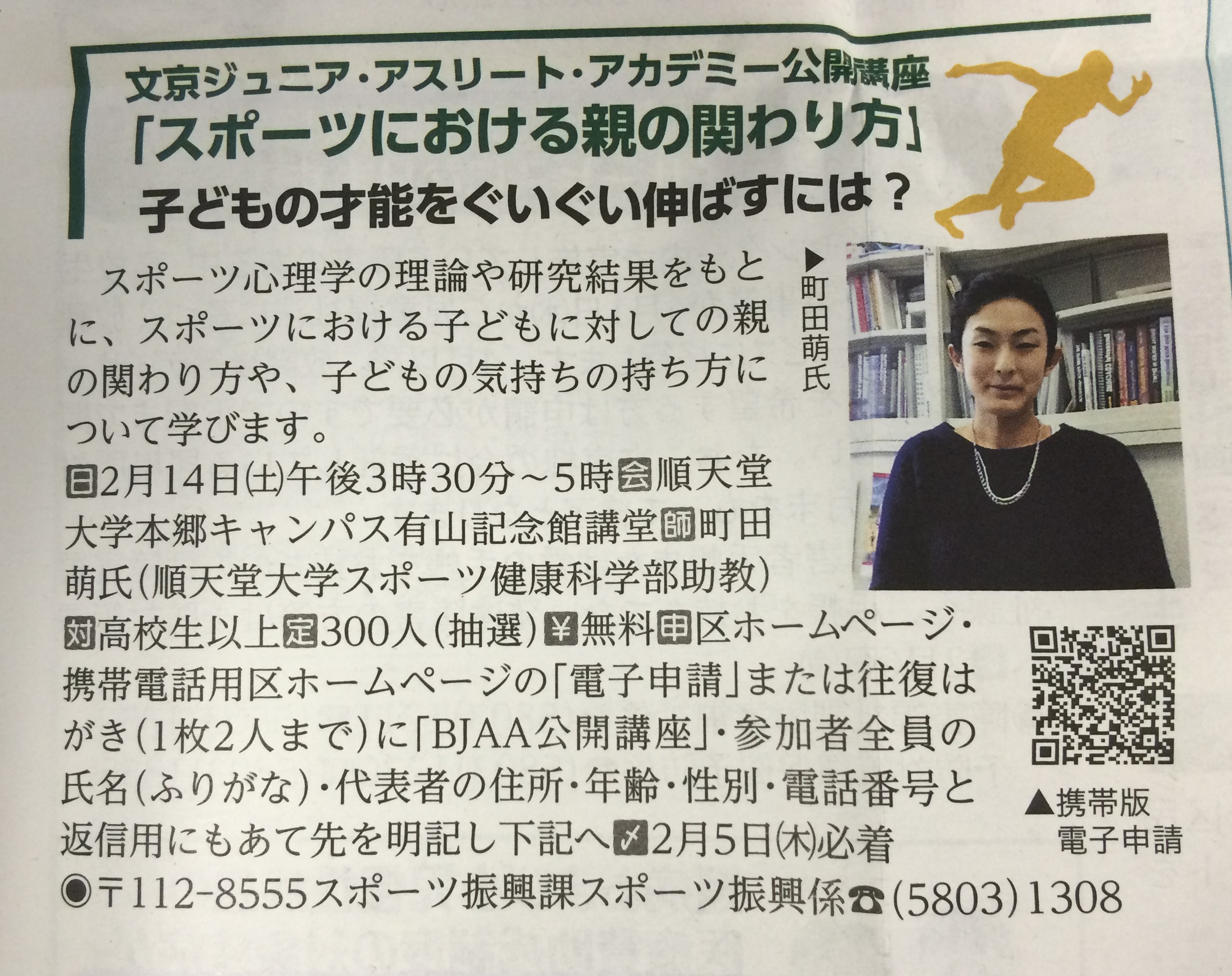 文京ジュニア・アスリート・アカデミーの公開講座で、